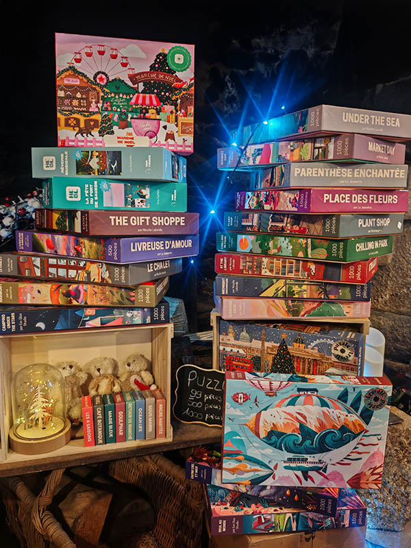 Côté boutique, vous retrouverez des plaids en alpaga venus du Pérou, doux et élégants, parfaits pour réchauffer vos soirées d’hiver. Et pour des instants ludiques ou cocooning, laissez-vous tenter par notre sélection de puzzles, idéals pour agrémenter vos après-midis tranquilles ou animés.