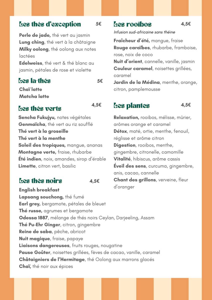 La Carte du Goût'Thé Salon de Thé à Guérande